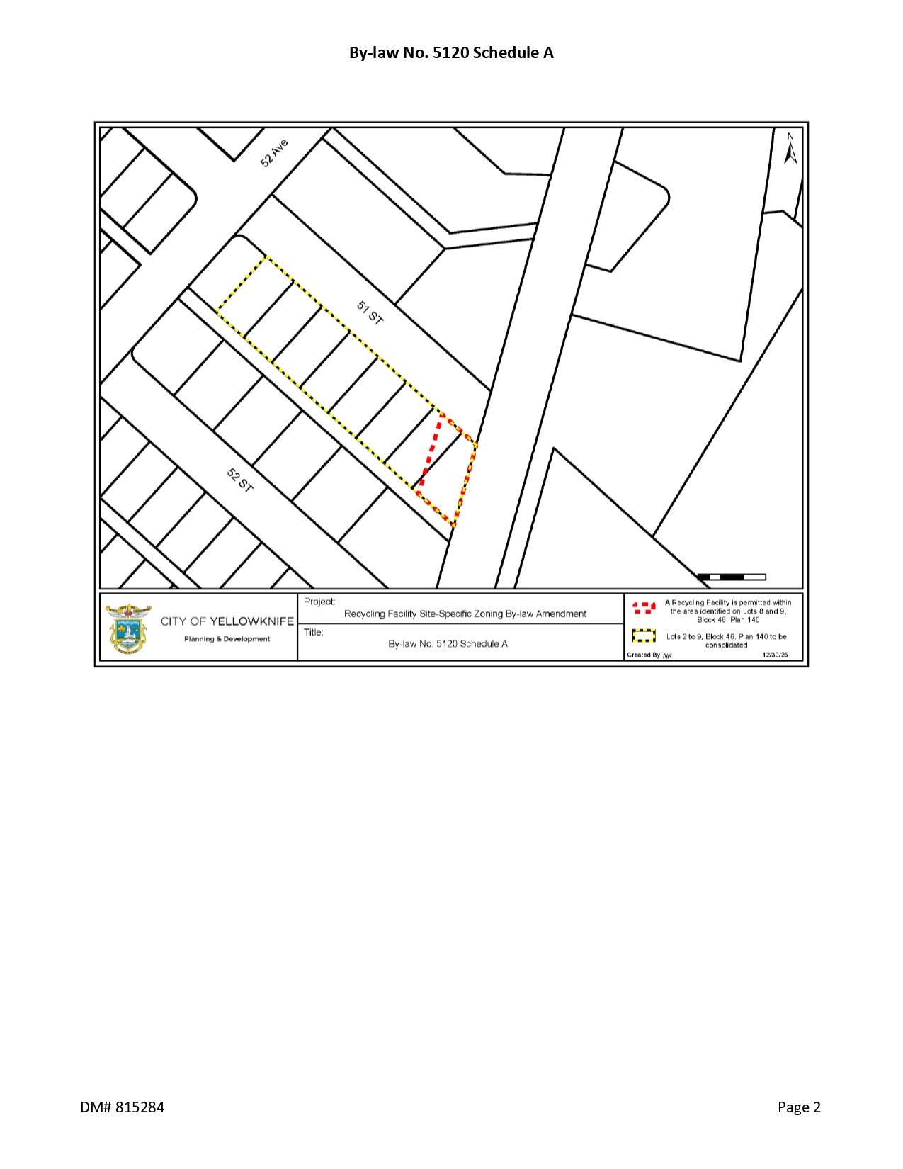 The Council of the City of Yellowknife will hold a PUBLIC HEARING at twelve o’clock in the afternoon (12:00 p.m.) on Wednesday, February 25, 2026, in City Hall Council Chamber to hear any submissions to By-law No. 5120, a by-law to amend Zoning By-law No. 5045, as amended. The purpose of the Zoning By-law amendment is to authorize the Use of a ‘Recycling Facility’ at the above location for a beverage container ‘Drop and Go’ sea can.