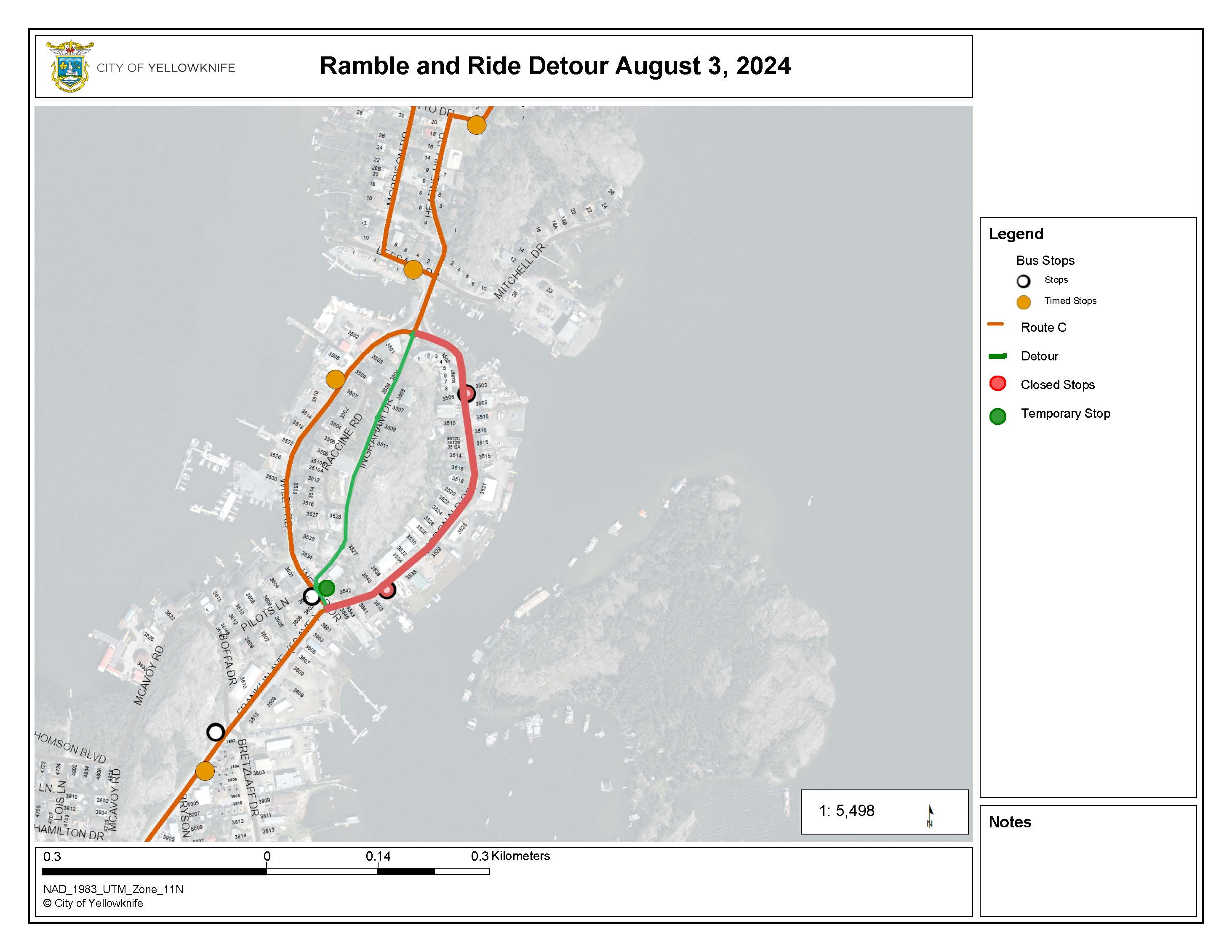 In celebration of the Old Town Ramble & Ride festival, the City of Yellowknife is offering free transit service for all routes and YATS on Saturday, August 3, 2024. As per the regular transit schedule, there will be no public transit on Sunday, August 4, 2024.